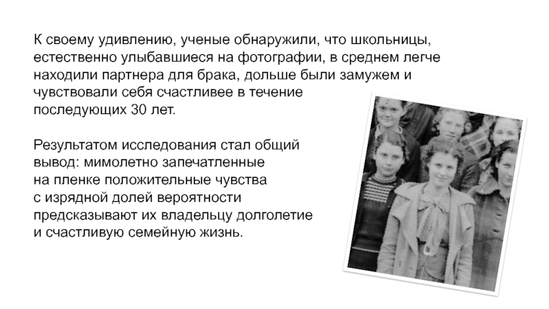 Слайд 63К своему удивлению, ученые обнаружили, что школьницы, естественно улыбавшиеся на