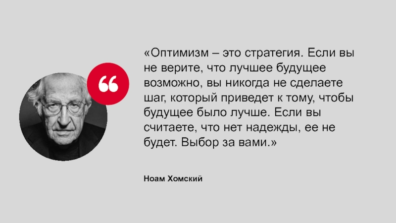 к тому, чтобы будущее было лучше. Если вы считаете, что нет надежды, ее не будет. Выбор за вами.»