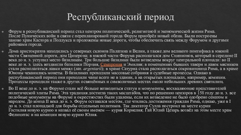 экономической жизни Рима. После Пунических войн в связи с перепланировкой города Форум