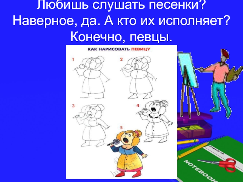 Любишь слушать песенки? Наверное, да. А кто их исполняет? Конечно, певцы.