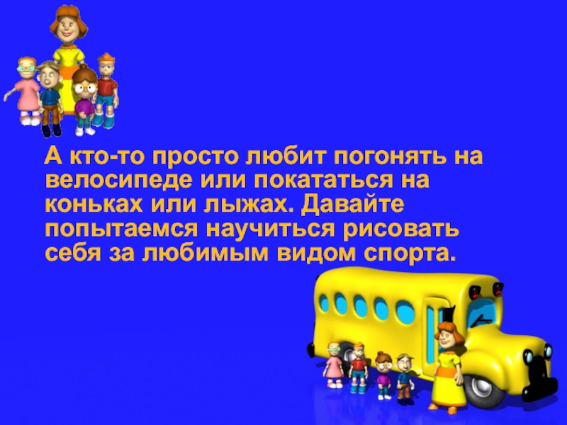 А кто-то просто любит погонять на велосипеде или покататься на коньках или лыжах. Давайте попытаемся