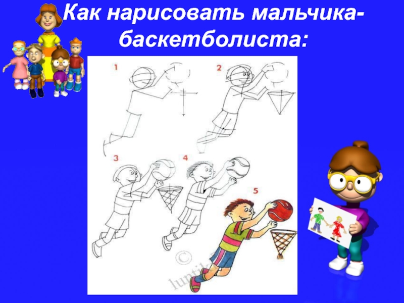 Слайд 5 Как нарисовать мальчика-баскетболиста: