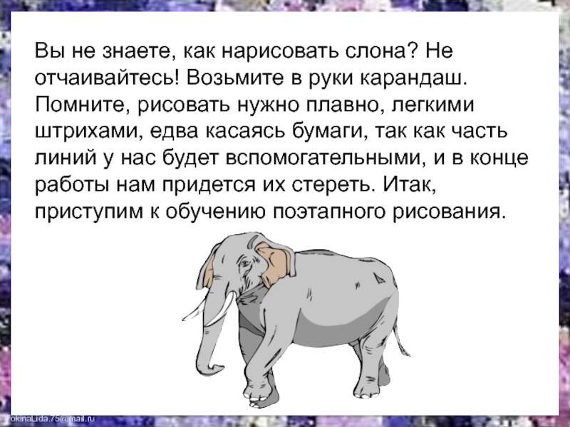 Слайд 2Вы не знаете, как нарисовать слона? Не отчаивайтесь! Возьмите в