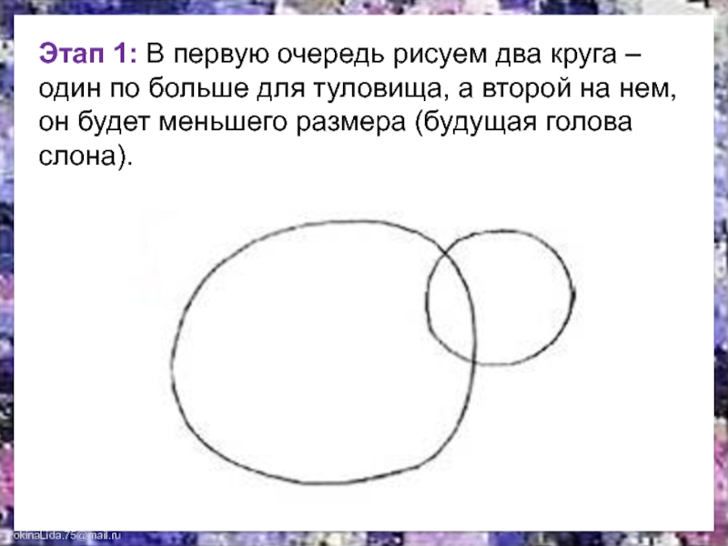 Слайд 3Этап 1: В первую очередь рисуем два круга – один
