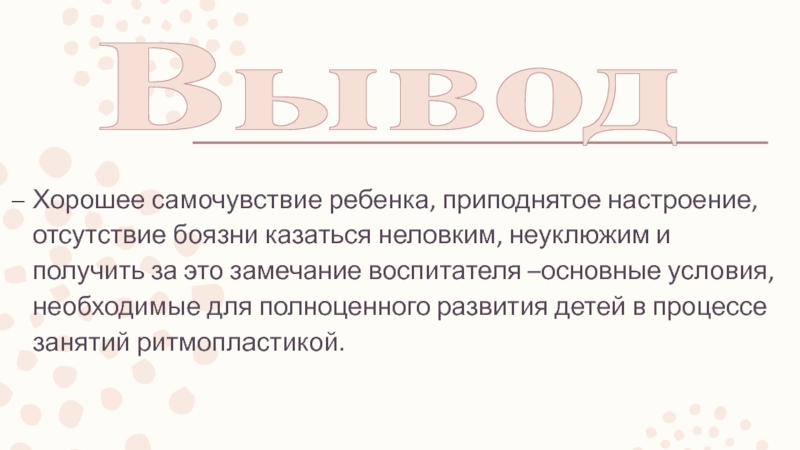 Хорошее самочувствие ребенка, приподнятое настроение, отсутствие боязни казаться неловким, неуклюжим и