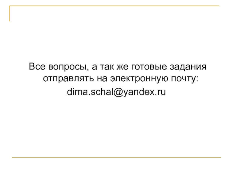 Все вопросы, а так же готовые задания отправлять на электронную почту:dima.schal@yandex.ru