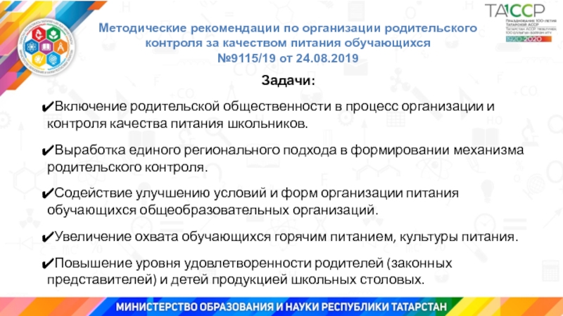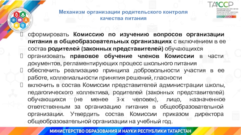 качества питания школьников.Выработка единого регионального подхода в формировании механизма родительского контроля.