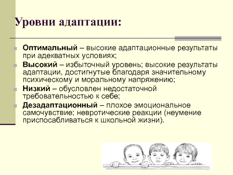 Оптимальный – высокие адаптационные результаты при адекватных условиях;