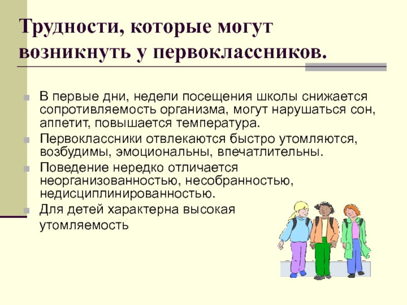 Слайд 4Трудности, которые могут возникнуть у первоклассников.