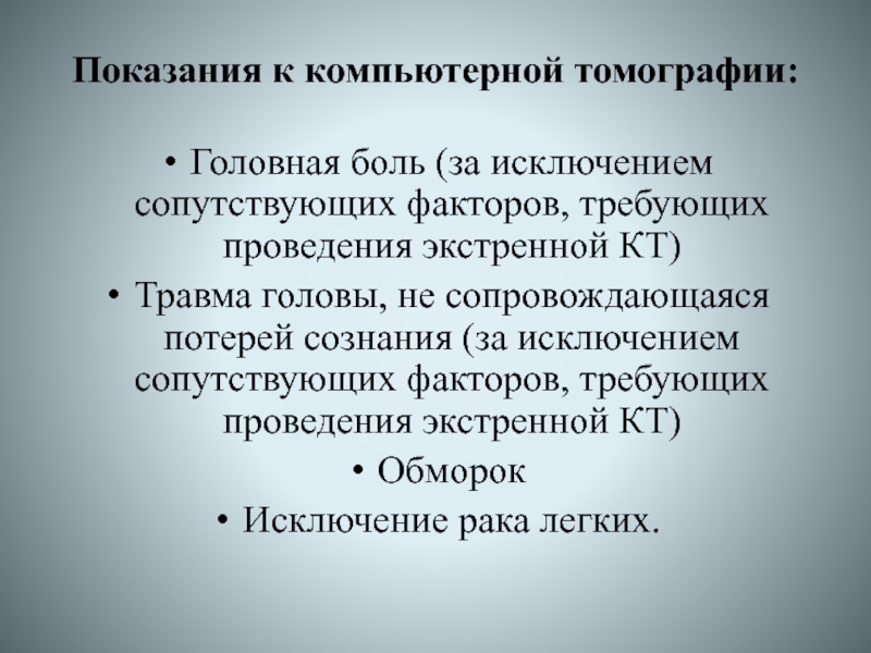 сопутствующих факторов, требующих проведения экстренной КТ)