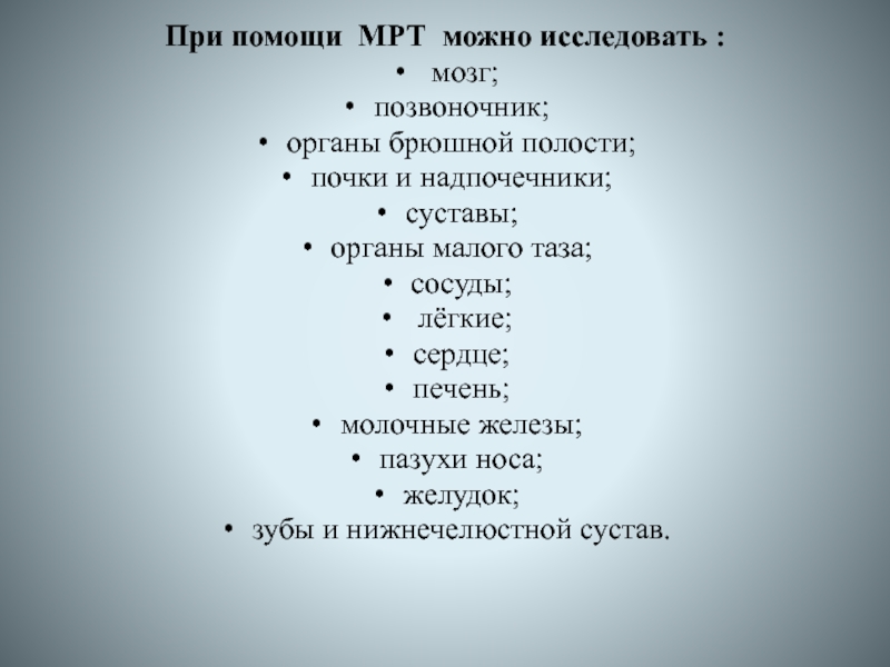 Слайд 15Магнитно-резонансная томография (МРТ) — томографический способ исследования внутренних органов и тканей с использованием физического