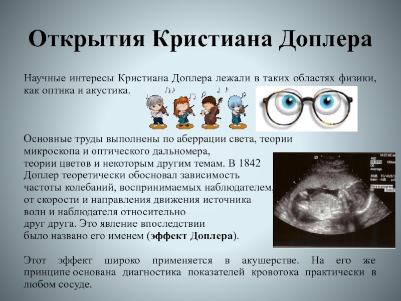 Этот эффект широко применяется в акушерстве. На его же принципе основана диагностика показателей кровотока практически в любом сосуде.