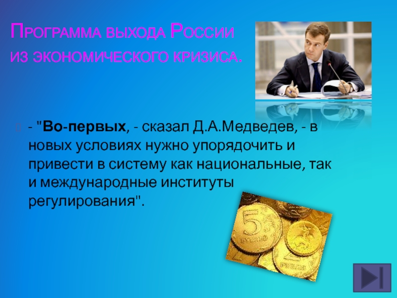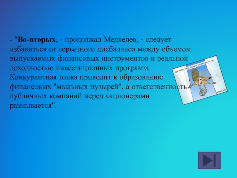 Слайд 31- "Во-вторых, - продолжал Медведев, - следует избавиться от серьезного