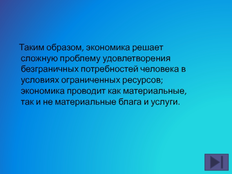 Слайд 7 Таким образом, экономика решает сложную проблему удовлетворения безграничных