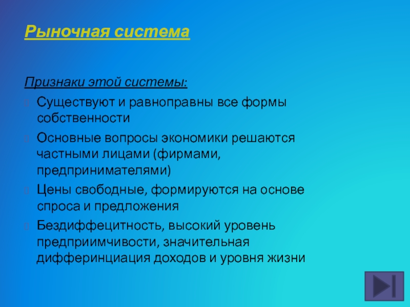 Бездиффецитность, высокий уровень предприимчивости, значительная дифферинциация доходов и уровня жизни