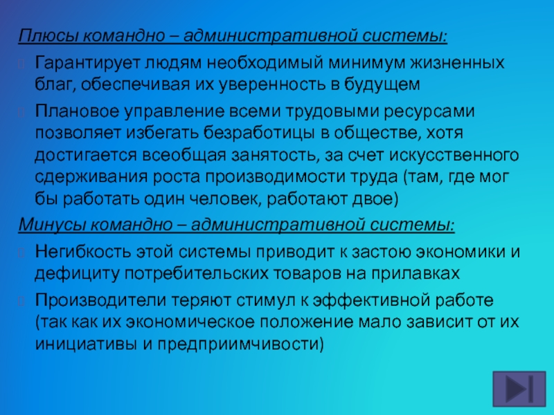 Негибкость этой системы приводит к застою экономики и дефициту потребительских товаров на прилавках