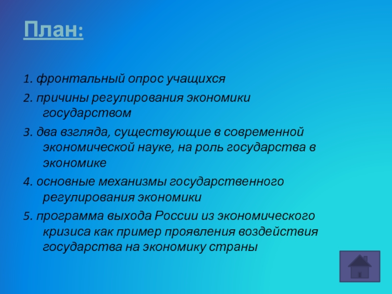 5. программа выхода России из экономического кризиса как пример проявления воздействия государства на экономику страны