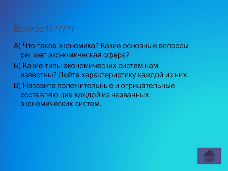 Слайд 5А) Что такое экономика? Какие основные вопросы решает экономическая сфера?