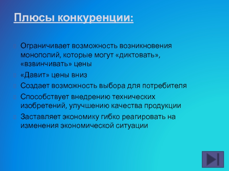 Ограничивает возможность возникновения монополий, которые могут «диктовать», «взвинчивать» цены