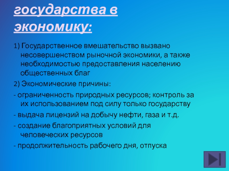 1) Государственное вмешательство вызвано несовершенством рыночной