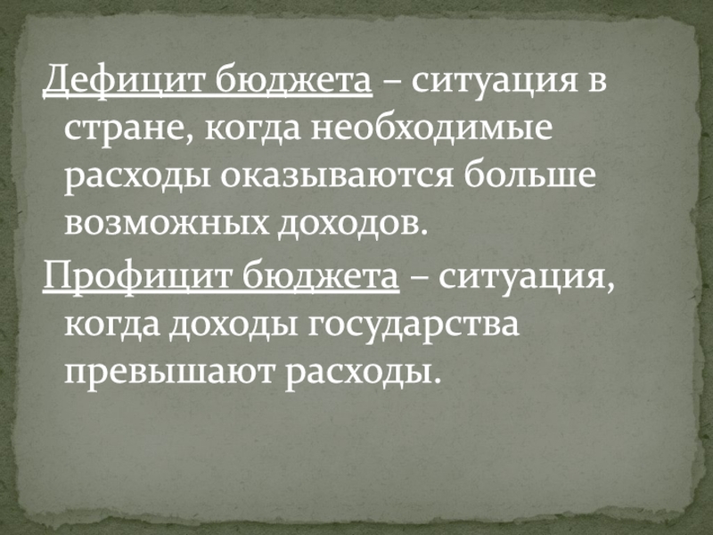 Слайд 19Дефицит бюджета – ситуация в стране, когда необходимые расходы оказываются