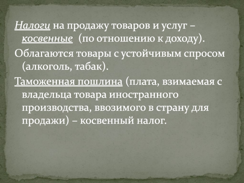 Слайд 8Налоги на продажу товаров и услуг – косвенные (по отношению