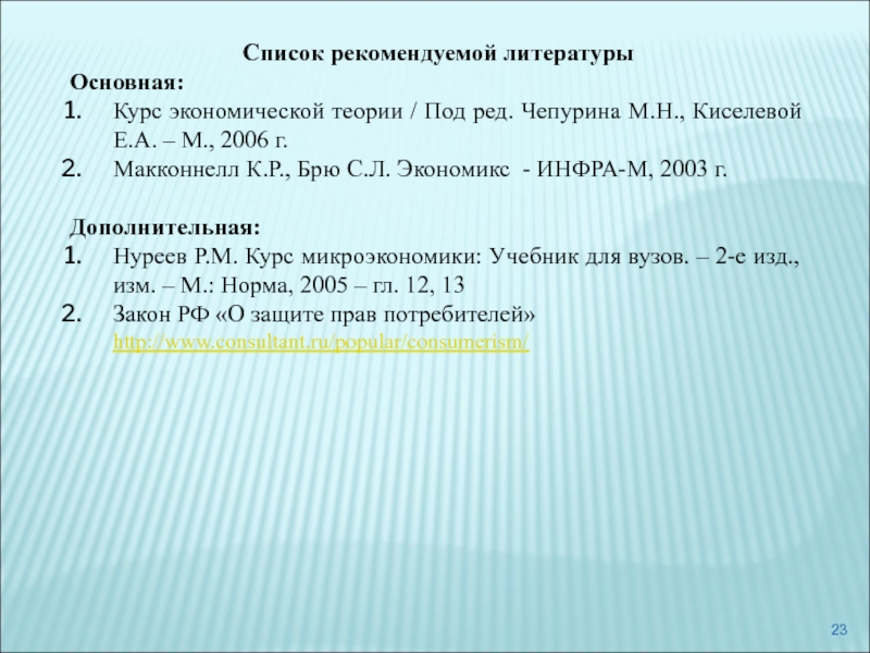 Слайд 23Список рекомендуемой литературы