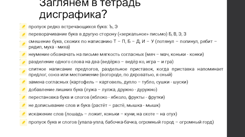 неумение обозначать на письме мягкость согласных (мяч – мач, коньки - конки)