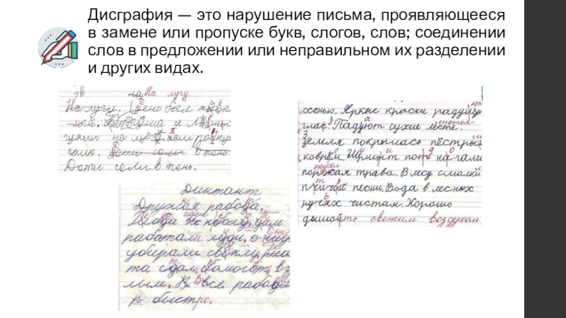 не дописывание слов и букв (растёт – растё, мышка - мышк)