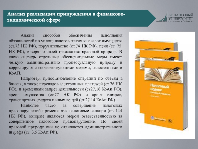 Слайд 10Анализ реализации принуждения в финансово- экономической сфере