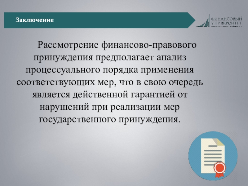 Рассмотрение финансово-правового принуждения предполагает анализ процессуального порядка применения соответствующих мер,