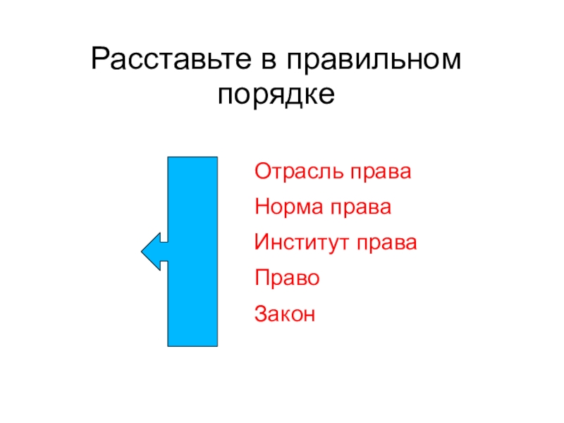 Расставьте в правильном порядкеОтрасль праваНорма права Институт права ПравоЗакон