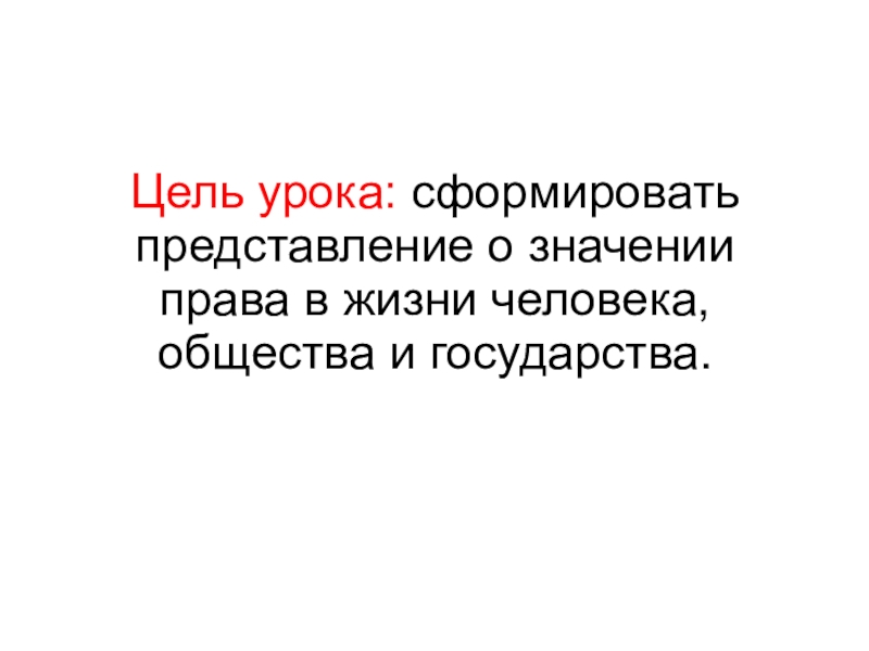 Слайд 3Цель урока: сформировать представление о значении права в жизни человека,