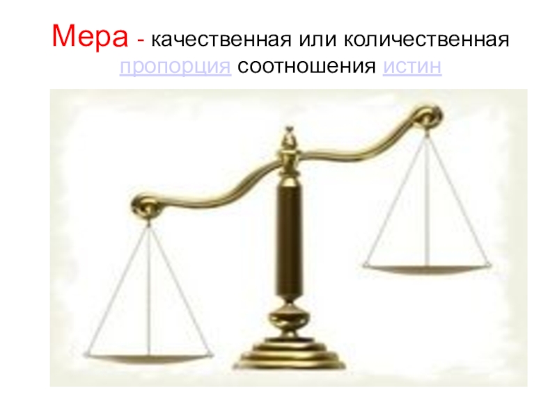 Слайд 7Мера - качественная или количественная пропорция соотношения истин