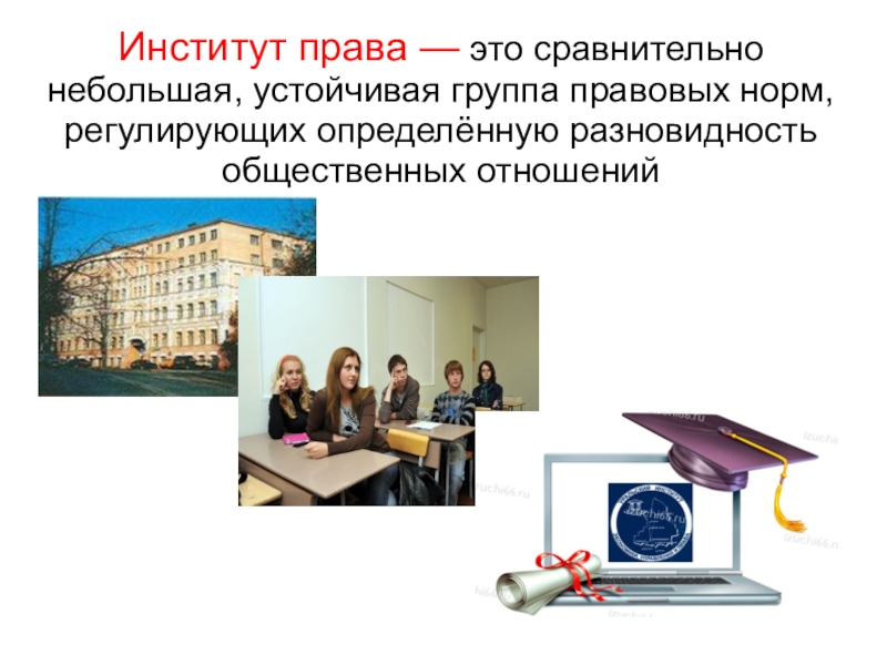 Слайд 17Институт права — это сравнительно небольшая, устойчивая группа правовых норм,