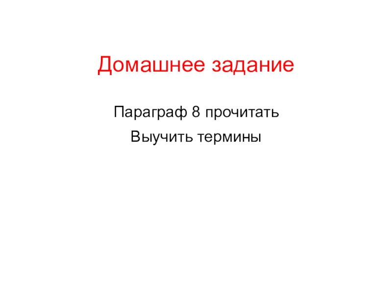 Домашнее заданиеПараграф 8 прочитатьВыучить термины