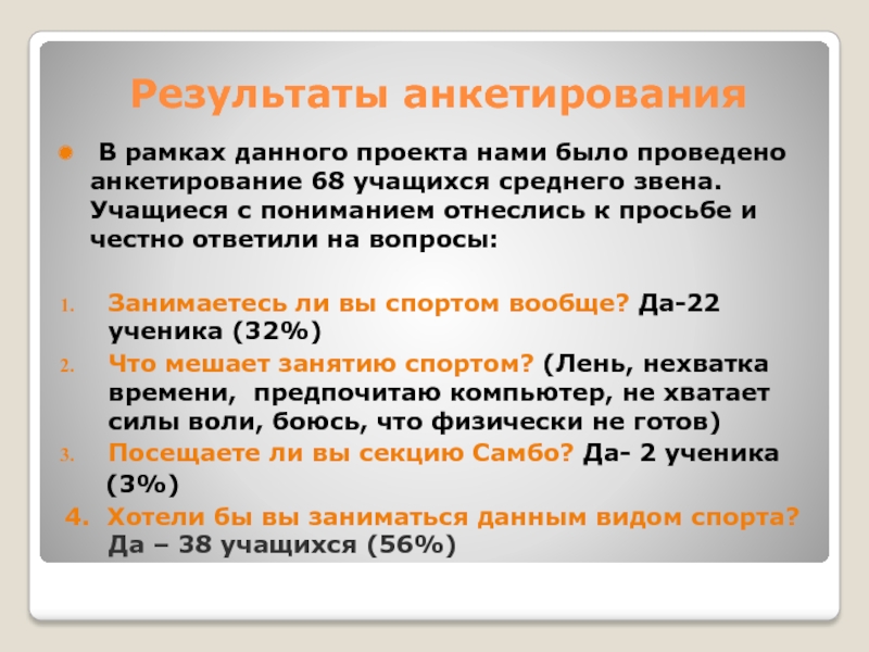 рамках данного проекта нами было проведено анкетирование 68 учащихся среднего