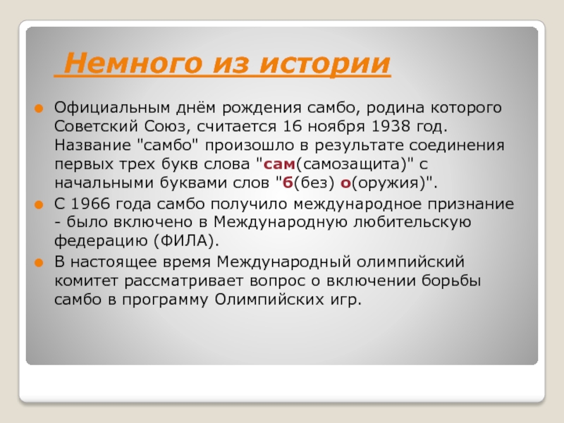 Союз, считается 16 ноября 1938 год. Название "самбо" произошло в
