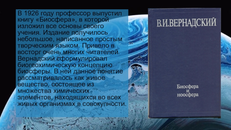 первый президент Украинской академии наук (1918—1921). Создатель научных школ и науки биогеохимии. Один из представителей русского космизма. Лауреат Сталинской премии I степени (1943).В круг его научных интересов входили: минералогия, кристаллография, геохимия, геология, почвоведение, радиогеология, биология, палеонтология, биогеохимия, метеоритика, философия и история науки. Кроме того, занимался организаторской и общественной деятельностью.