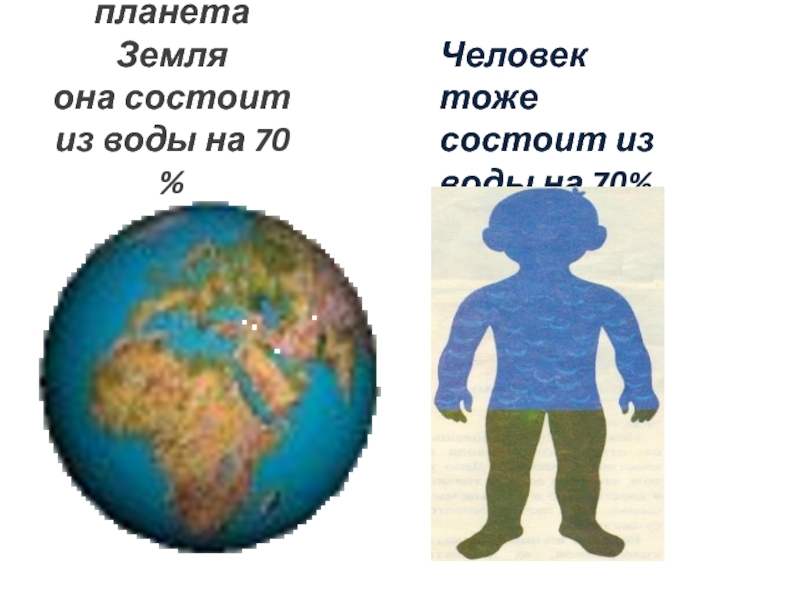 Наша планета Земля она состоит из воды на 70 %Человек тоже состоит из воды на 70%