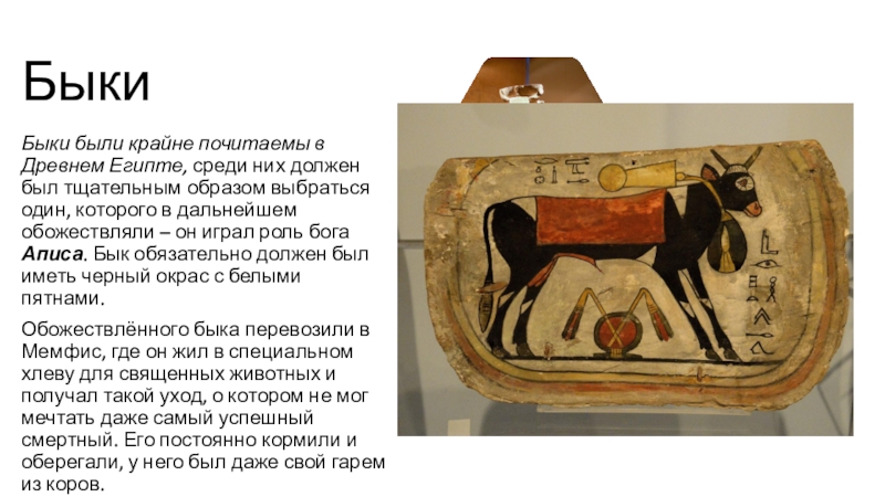 Быки были крайне почитаемы в Древнем Египте, среди них должен