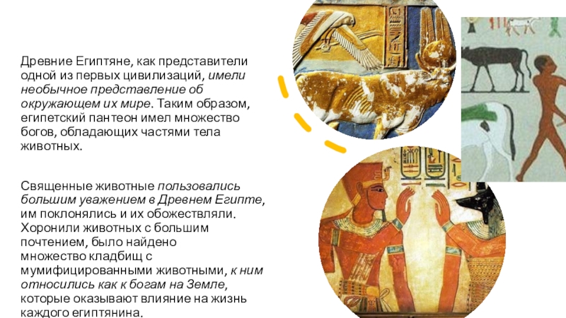 Священные животные пользовались большим уважением в Древнем Египте, им поклонялись и их обожествляли. Хоронили животных с большим почтением, было найдено множество кладбищ с мумифицированными животными, к ним относились как к богам на Земле, которые оказывают влияние на жизнь каждого египтянина.