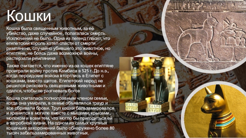 Кошка была священным животным, за её убийство, даже случайное, полагалась