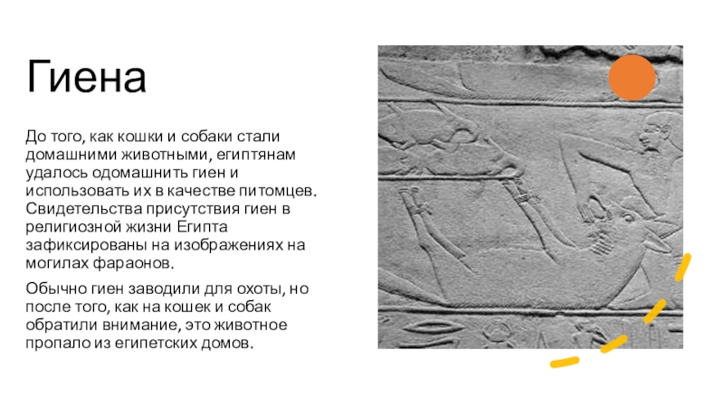 Обычно гиен заводили для охоты, но после того, как на кошек и собак обратили внимание, это животное пропало из египетских домов.