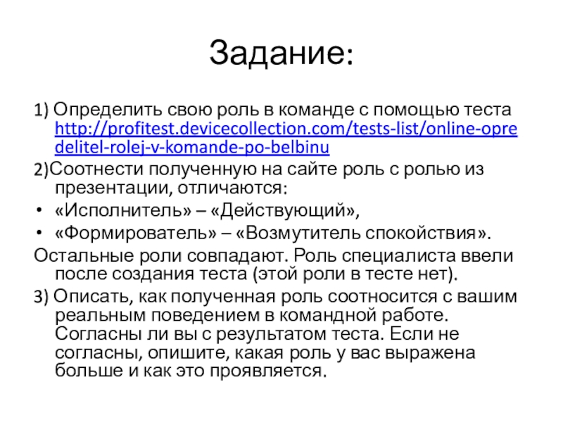 1) Определить свою роль в команде с помощью теста