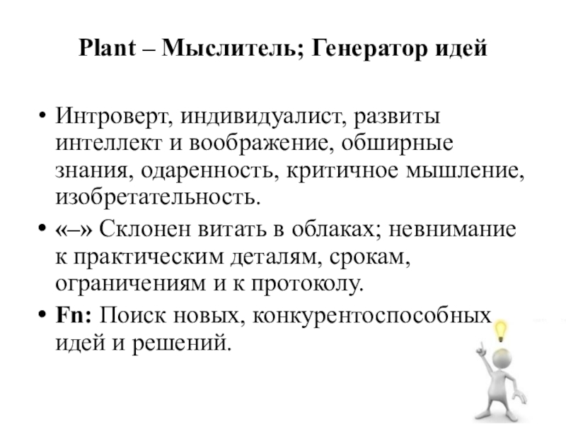 Слайд 5Plant – Мыслитель; Генератор идей