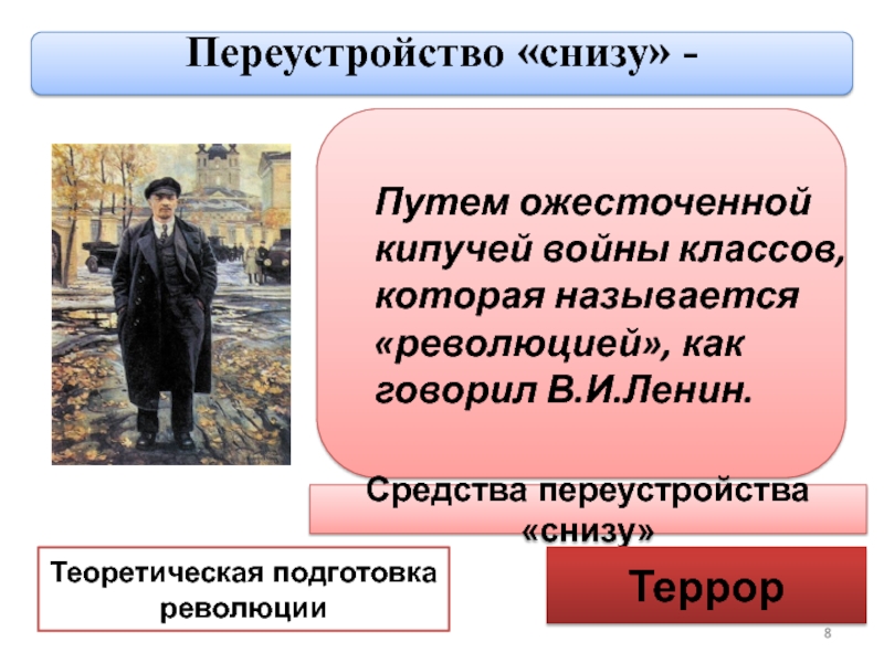 Слайд 8Путем ожесточенной кипучей войны классов, которая называется «революцией», как говорил