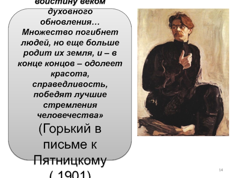 Слайд 14«Новый век будет воистину веком духовного обновления… Множество погибнет людей,