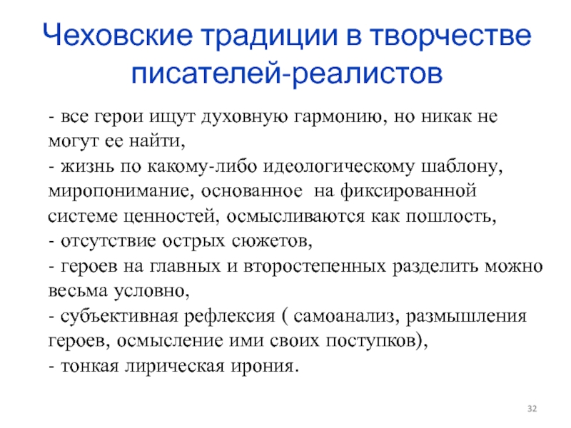 Слайд 32Чеховские традиции в творчестве писателей-реалистов
