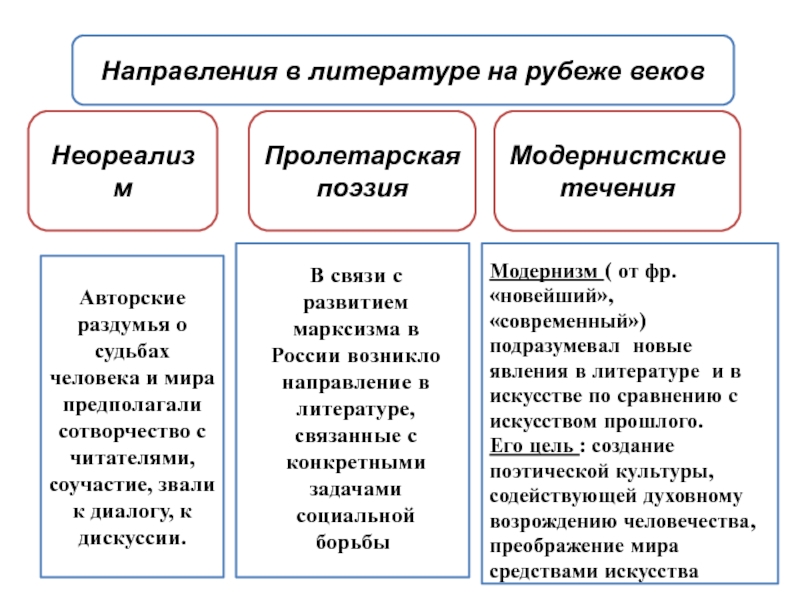 Слайд 24Направления в литературе на рубеже веков